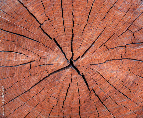 Fototapeta premium Photo of a brown texture of a cross section of tree