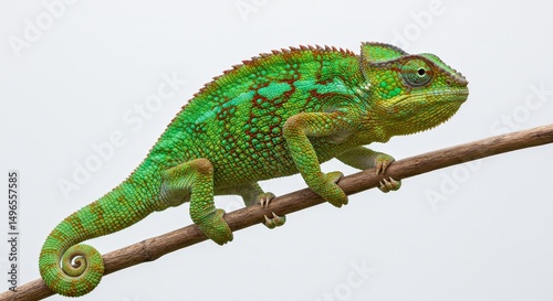 © Chad, Obraz premium Photo of a Chameleon on Branch with White Background