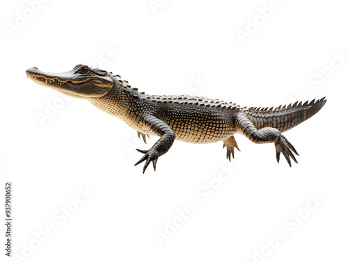 © Thak Pixel, Naklejka premium photo of a crocodile floating mid-air on isolated background