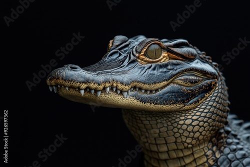 Obraz premium Photo of a crocodile isolated against a black background, emphasising the...