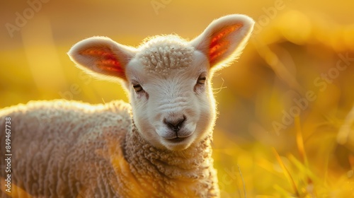 Obraz premium Photo of a cute baby sheep. AI generated.