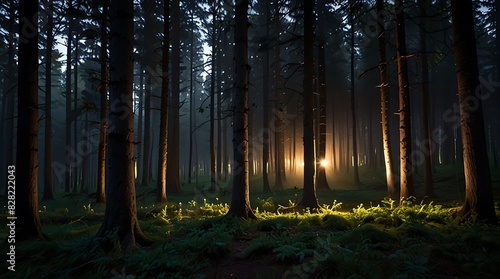 © Free, Fototapeta premium photo of a dense forest with tall tress.