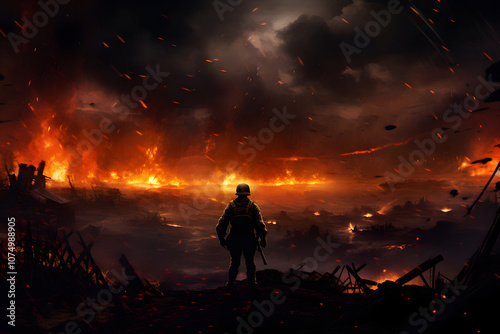 © MrJeans, Fototapeta premium photo of a destroyed batttlefield