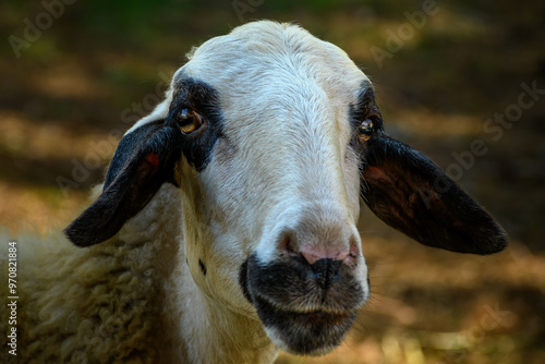 © Nikolay Dimitrov, Fototapeta premium Photo of a goat eating grass in a field
