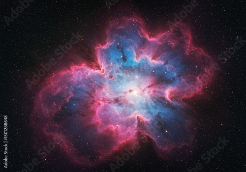 © RickR, Fototapeta premium Photo of a Luminous Nebula with Blue Pink Hues in Deep Space and Stars