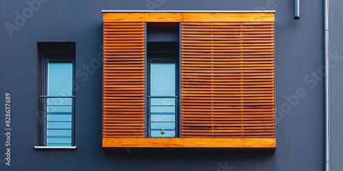 Fototapeta premium photo of a minimal modern wooden shutter, half side view of building
