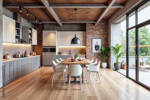 © f_bossa, Fototapeta premium photo of a modern apartment kitchen with designer interior and furniture, luxury interior architecture design idea