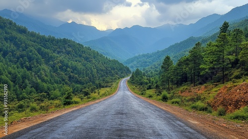 Naklejka premium photo of a narrow asphalt road in a mountainous area.