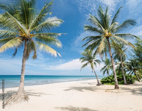 Fototapeta premium Photo of a palm tree standing firmly on the beach,