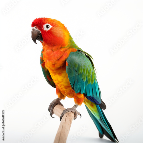 © Andrii Yablonskyi, Obraz premium photo of a parrot on a white background сreated with Generative Ai