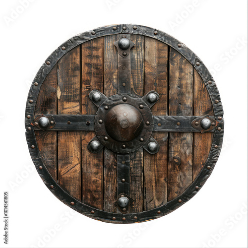 © Ula, Naklejka premium Photo of a Viking shield, isolated on white background