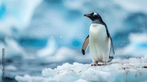 © Viktor, Fototapeta premium Photo of an adorable penguin in Antarctica. AI generated.