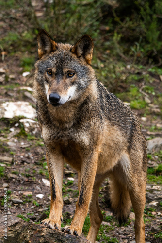 © Irene Castro Moreno, Naklejka premium Photo of an Iberian wild wolf in the middle of nature in Zamora, Spain. Wild animal in the forest.