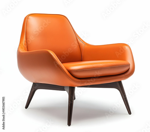 Naklejka premium Photo of an orange sofa against an empty teal wall, creating a modern and...