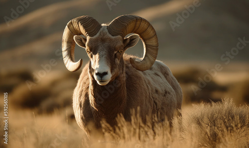 © Bartek, Naklejka premium photo of Argali in its natural habitat. Generative AI