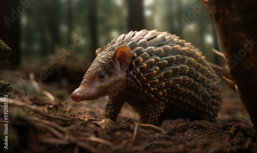 © Bartek, Fototapeta premium photo of armadillo in its natural habitat. Generative AI