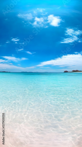 © ScottR, Fototapeta premium Photo of Azure Ocean and Sky with Clouds and Bright Sunlight