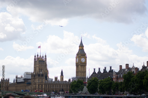 Obraz premium Photo of big ben clock tower and palace of westminster in London. Tourist...