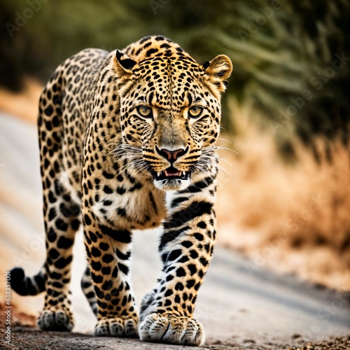 © Flash, Naklejka premium photo of big leopard running in the forest, generative AI