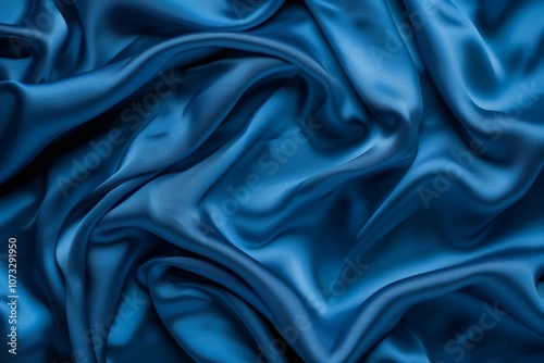 © Larysa, Obraz premium Photo of Blue silk fabric drapery material. Background texture for backdrops or mapping