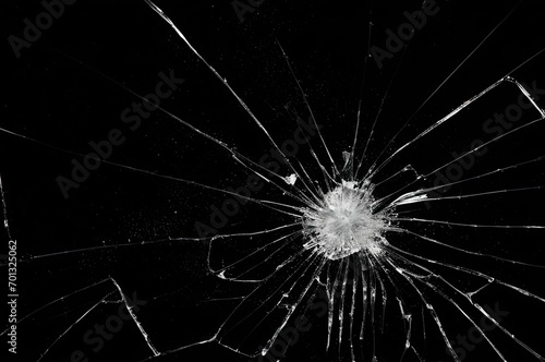 Obraz premium Photo of broken glass on a black background, cracks.