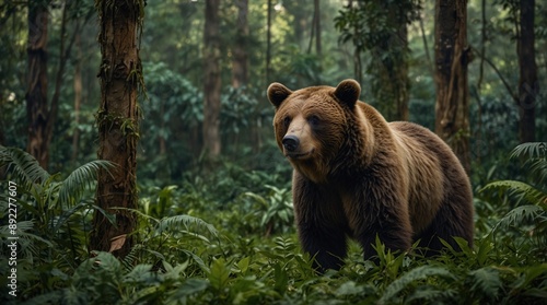 © M.Taufiq, Obraz premium photo of brown bear in the wild made by AI generative