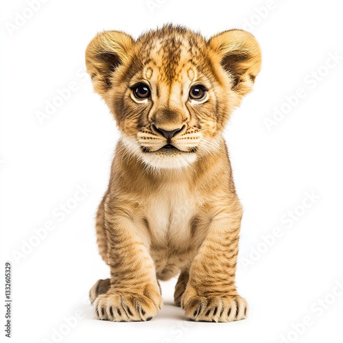 © ImagePulse, Fototapeta premium Photo of Curious young Lion cub isolated on white background