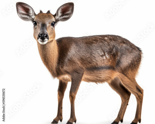 Fototapeta premium photo of duiker, know as forest-dwelling antelope isolated on white background. Generative AI