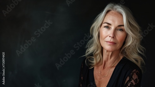Fototapeta premium Photo of gorgeous mature old woman standing isolated over dark background...