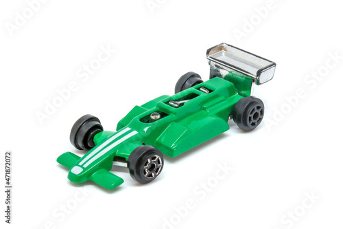 © Badunchik, Fototapeta premium Photo of green toy model car isolated on white background