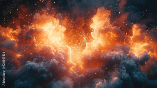 Fototapeta premium photo of nuclear explosion, smoke and fire, flame, burning, clouds, glow,...