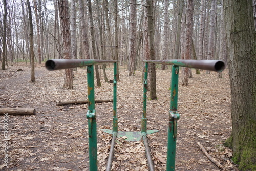 © Georgi, Fototapeta premium Photo of parallel bars in the woods