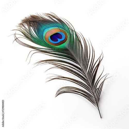 Obraz premium Photo of Peacock feather isolated on white background