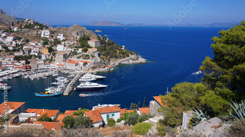 Naklejka premium Photo of picturesque island of Hydra on a spring morning, Saronic Gulf, Greece