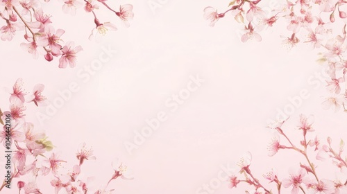 Fototapeta premium Photo of, Pink background with delicate cherry blossom branches and falling petals in soft pastel tones for design, banner template