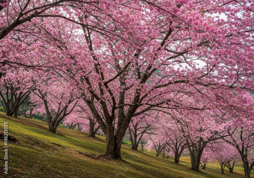 © Siasart Studio, Obraz premium Photo of Pink Cherry Blossom Trees on a Hillside