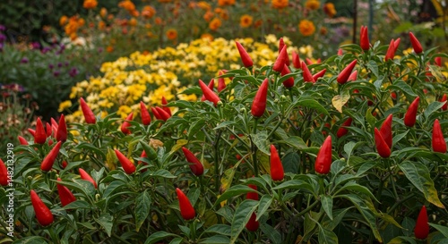 © Siasart Studio, Naklejka premium Photo of Red Chili Peppers in a Garden