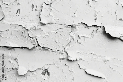 © Larysa, Obraz premium Photo of Rough peeled white plaster wall. Background texture for backdrops or mapping