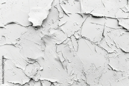 © Larysa, Obraz premium Photo of Rough peeled white plaster wall. Background texture for backdrops or mapping