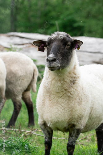 © Linda, Fototapeta premium Photo of sheep eating grass in a field