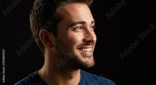 © Daniel, Fototapeta premium Photo of Smiling Handsome Man Portrait Isolated on Dark Background