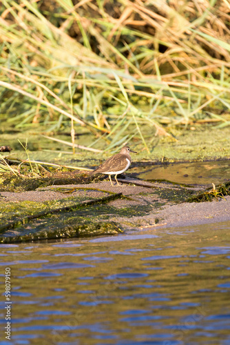 © mauriziobiso, Fototapeta premium Photo of solitary sandpiper in river