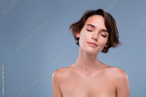 Obraz premium photo of stunning gorgeous lady closing eyes enjoy peeling hydrating...