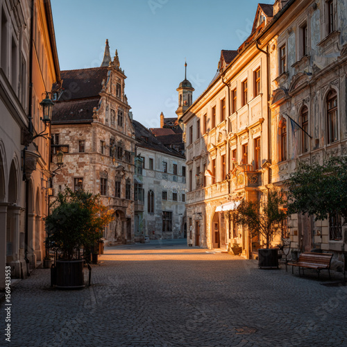Naklejka premium photo of the old town center on the golden hour of a sunny day without people