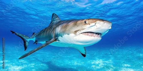 © Brian, Fototapeta premium photo of tiger shark swimming underwater