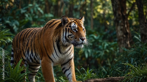 © M.Taufiq, Fototapeta premium photo of tiger with green forest background made by AI generative