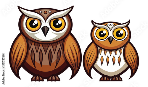 Fototapeta premium Photo of two cartoon owls isolated on white background