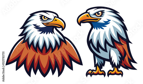 Obraz premium Photo of two stylized eagle illustrations isolated on white background