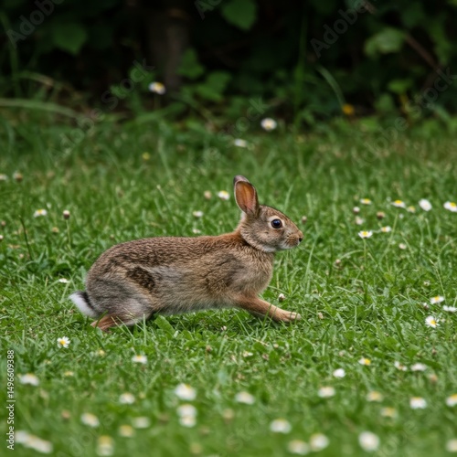 Fototapeta premium Photo of Wild Rabbit Running in Green Grass Field