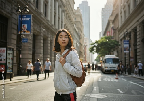 Fototapeta premium Photo of Young Woman Exploring City Street